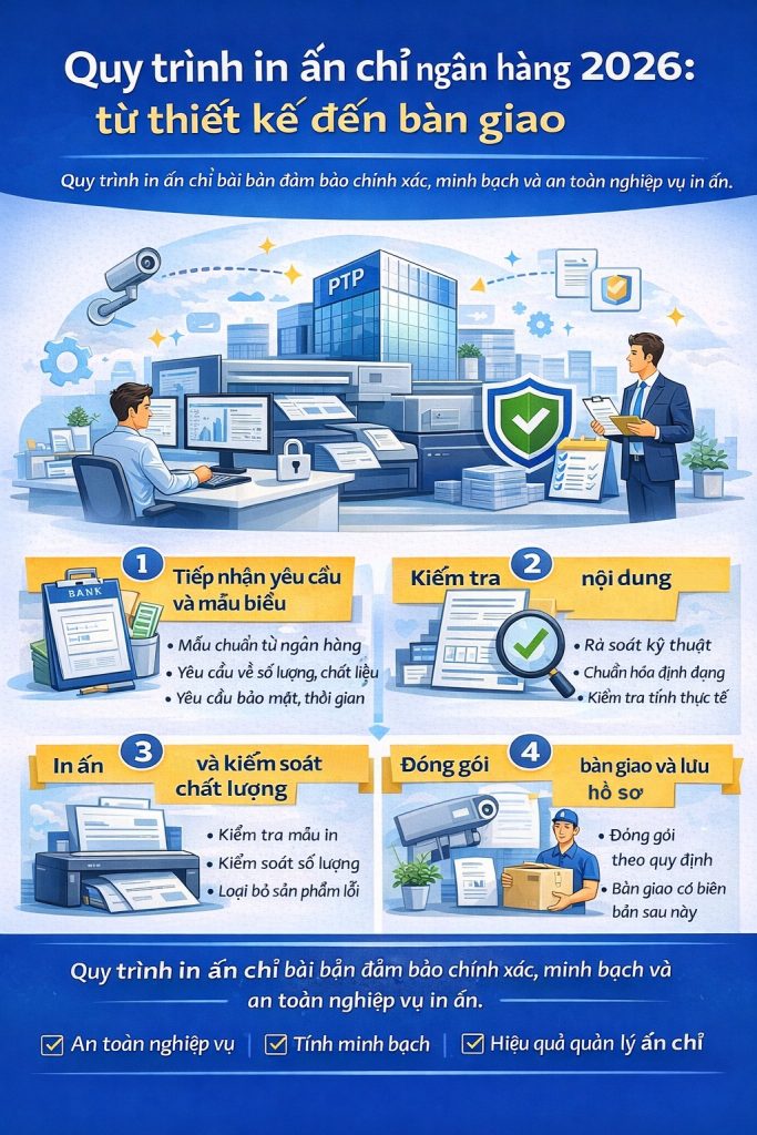 Một quy trình in ấn chỉ ngân hàng bài bản không chỉ đảm bảo chất lượng sản phẩm mà còn giúp ngân hàng kiểm soát rủi ro trong toàn bộ vòng đời ấn chỉ.